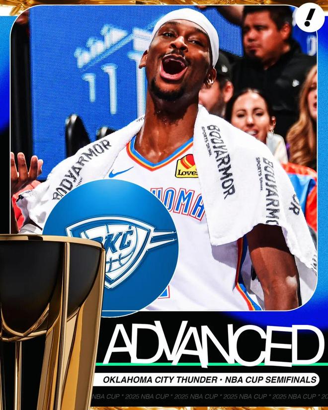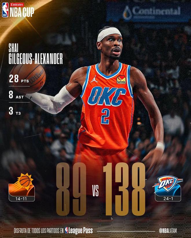 2025年12月11日 NBA杯雷霆全员得分49分大胜太阳进4强 鸭梨三节28+8 切特24+8